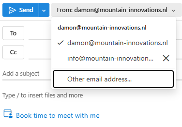Je kunt Outlook ook zo instellen dat jou info@domein beschikbaar is als afzender bij het opstellen van een mail.